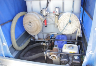 Также на вооружении добровольцев имеется переносной огнетушитель, работающий от двигателя внутреннего сгорания. Аппарат переносится на плечах пожарного и может работать по фронту пожара на расстоянии около 300 метров. Кроме того, добровольцы оснащены ранцевыми огнетушителями и комплектами боевой одежды.