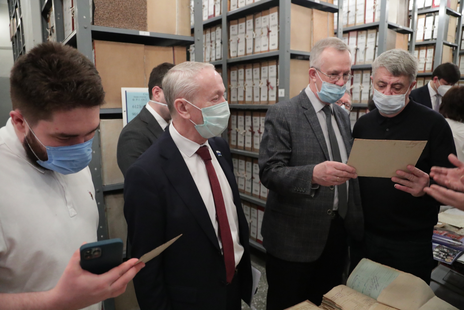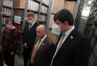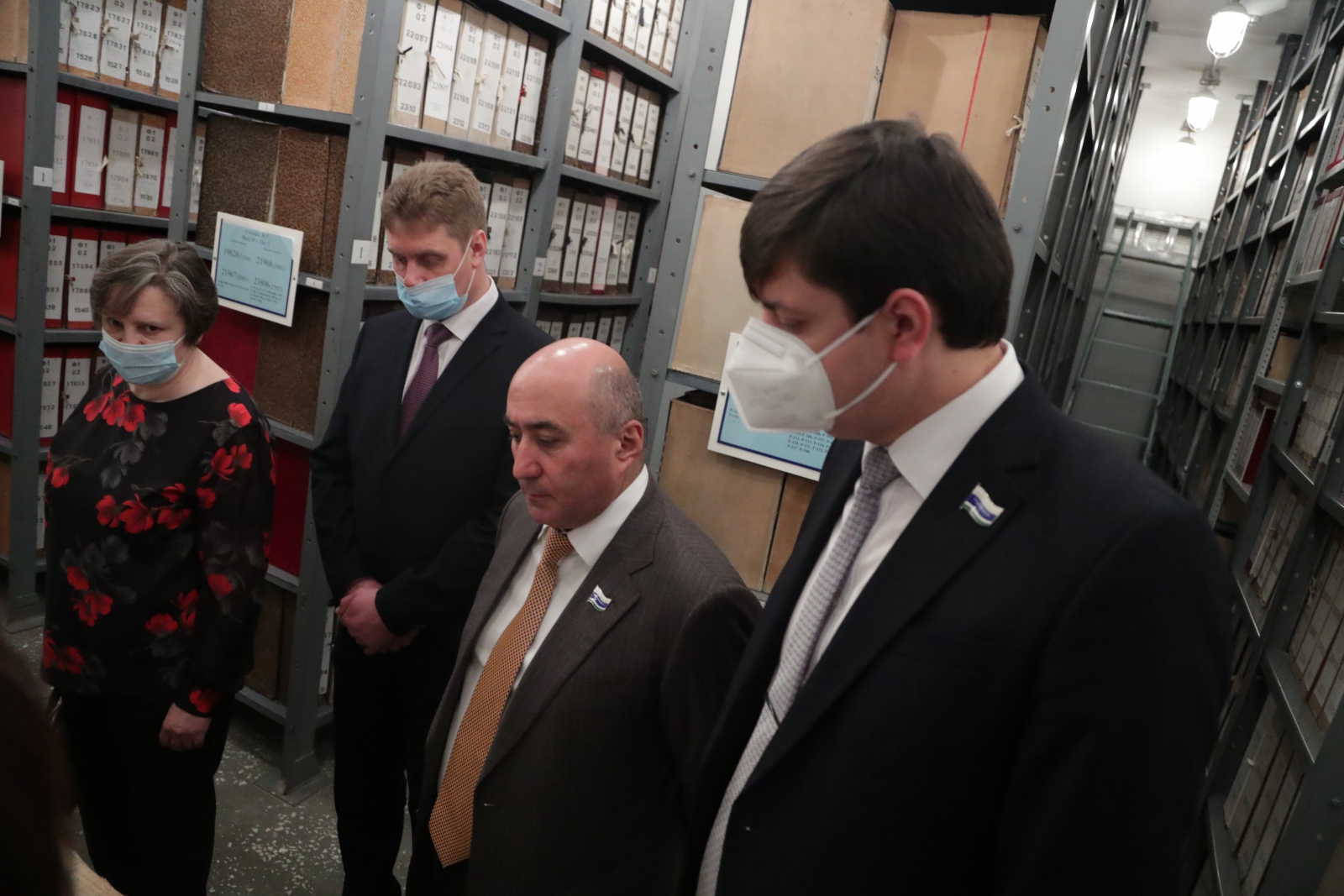 Перед началом заседания для депутатов была организована обзорная экскурсия по двум учреждениям, входящим в состав архивной службы Свердловской области: Государственному архиву административных органов Свердловской области и Центру документации общественных организаций. В первом учреждении хранятся раритетные документы из архивов органов госбезопасности, касающиеся репрессий 30-х годов, а также жизни на Урале военнопленных после Великой Отечественной войны. Здесь депутаты увидели карточки военного учета, солдатские письма, фотографии.