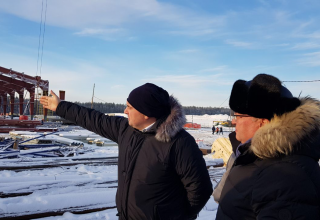 Затем парламентарии отправились на стройплощадку мусоросортировочного комплекса. Депутаты отметили, что объекты МСК строятся согласно утвержденному графику. Сейчас ведется монтаж каркаса производственного корпуса, параллельно на готовые конструкции кладется профлист кровли. Участники заседания осмотрели будущий полигон твердых коммунальных отходов, где уже разработано порядка 70% общего объема котлована и продолжается возведение ограждающей дамбы.