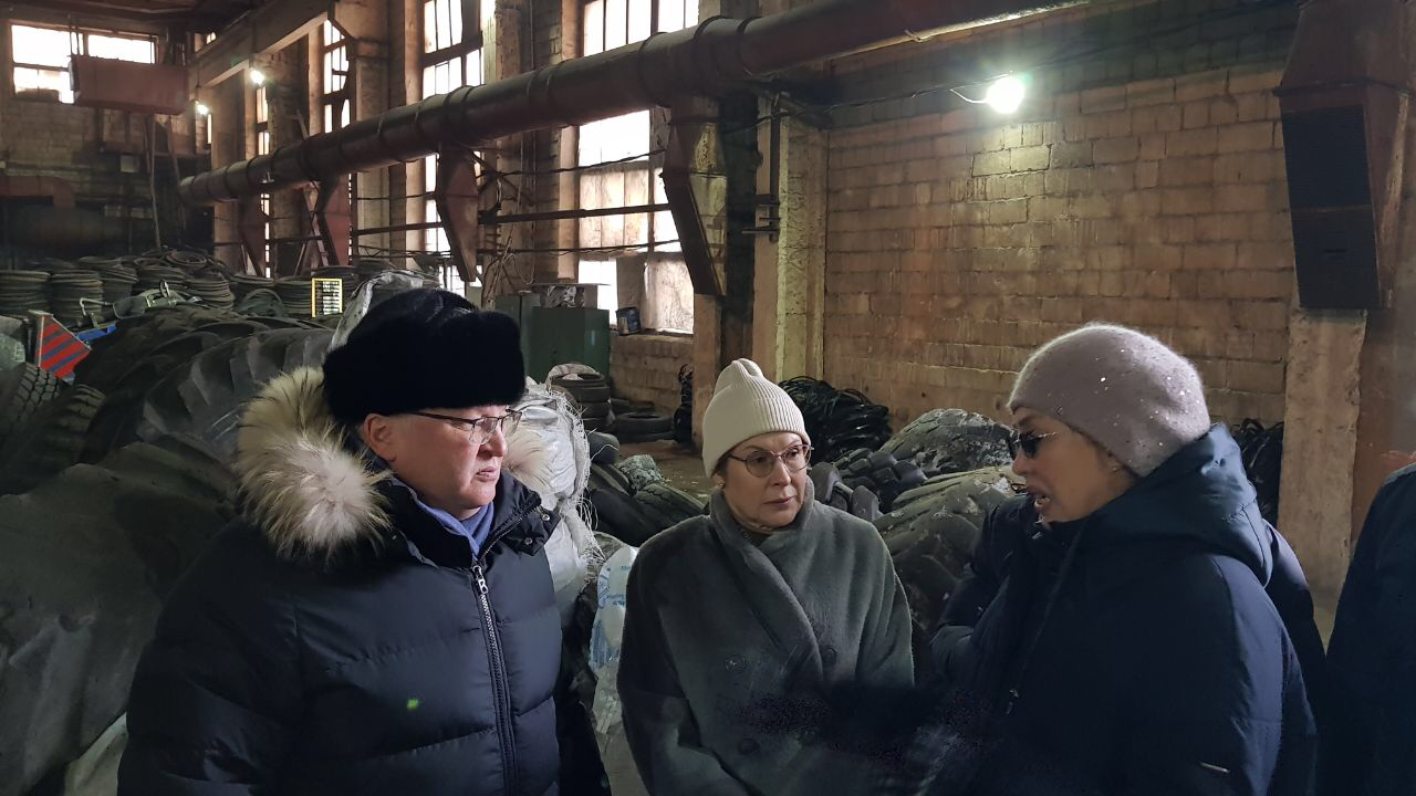 Работа выездного заседания началось со знакомства с работой предприятия по утилизации шин. ООО «ЦГС» утилизирует отработанные шины и покрышки, перерабатывая их в резиновую крошку и покрытие для спортивных объектов. Дробленая резина используется при обслуживании футбольных полей с искусственным покрытием, строительстве детских и спортивных площадок. Предприятие собирает в регионе более 6 тысяч тонн использованных шин в год. Депутаты побывали в цехах завода, осмотрели оборудование по утилизации шин, познакомились с ассортиментом готовой продукции предприятия.