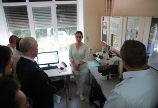 В ходе выездного заседания в центр «Охраны здоровья матери и ребенка» были рассмотрены вопросы охраны материнства, сбережению здоровья детей и подростков, в том числе репродуктивного здоровья. Депутаты посетили отделения центра: лаборатории цитогенетическую, неонатального скрининга, молекулярно-генетических методов исследования, а также познакомились с работой отделения вспомогательных репродуктивных технологий и отделения пренатальной диагностики.