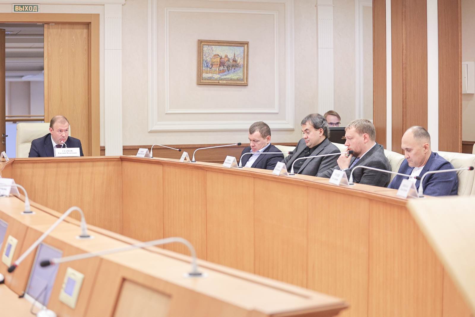 В заседании под председательством Евгения Старкова участвовали депутаты Игорь Аксенов, Дмитрий Жуков, Тарас Исаков, Владимир Смирнов.