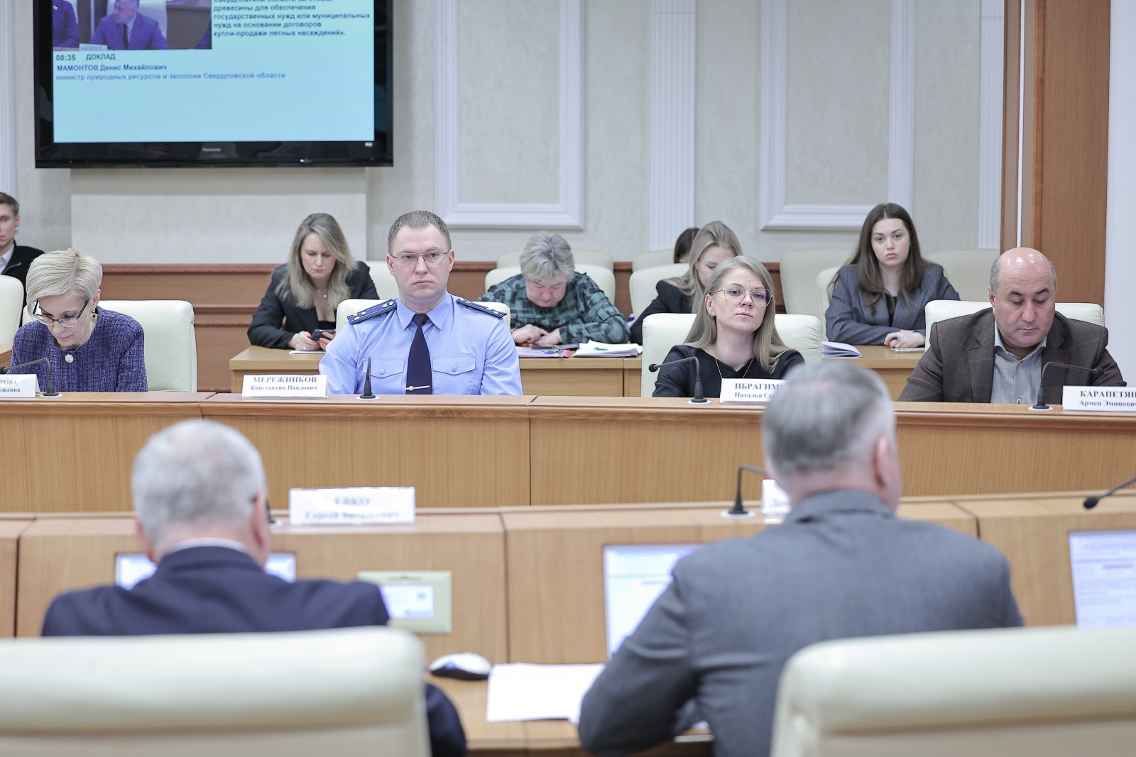 С докладом выступил министр природных ресурсов и экологии Свердловской области Денис Мамонтов. Он пояснил, что в 2010 году, когда закон был принят, очисткой лесов занимались частные фирмы, которые заключали госконтракты на профилактическую вырубку лесов. В 2014 году с изменением в федеральном законодательстве стало возможным выполнять эти работы подведомственным учреждениям, в Свердловской области таким учреждением стала Уральская база авиационной охраны лесов.