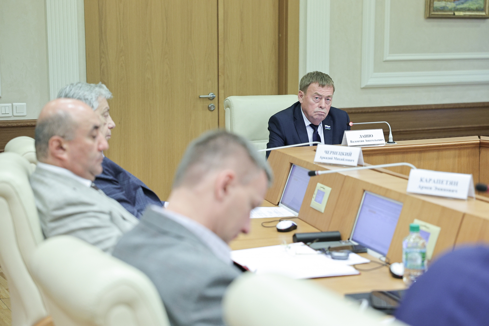 Участие в заседании комитета приняли первый заместитель председателя Аркадий Чернецкий, заместитель председателя Армен Карапетян и депутаты Агарон Варданян, Алексей Свалов, Олег Гордеев.