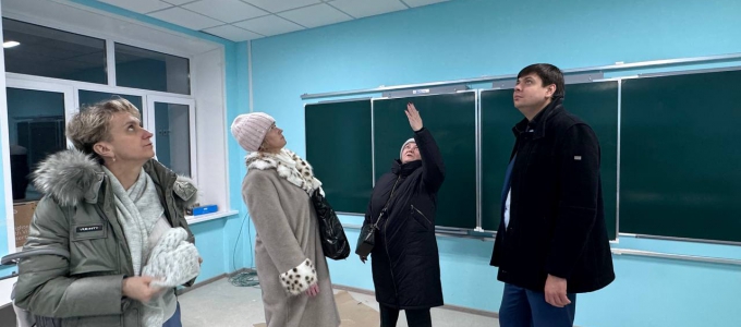 Во время очередного рабочего визита в Рефтинский городской округ, Михаил Зубарев проверил ход работ по капремонту школы №15.