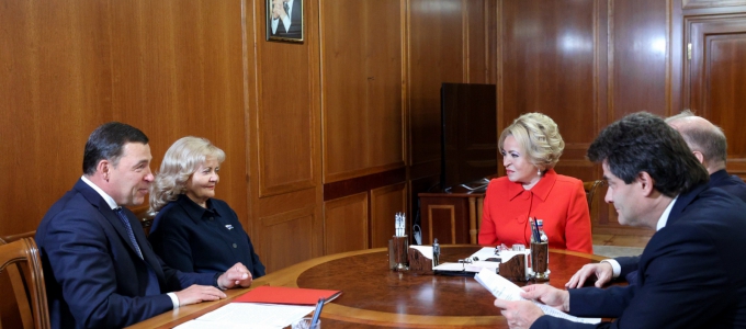 Председатель Законодательного Собрания Свердловской области Людмила Бабушкина и губернатор Свердловской области Евгений Куйвашев обсудили ключевые проекты социально-экономического развития нашего региона в ходе рабочей встречи с председателем Совета Федерации Валентиной Матвиенко