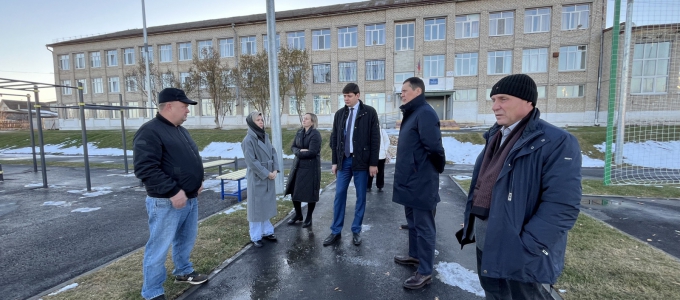Председатель комитета по региональной политике и развитию местного самоуправления Михаил Зубарев проверил реализацию финишного этапа строительства стадиона в школе №8 села Знаменского