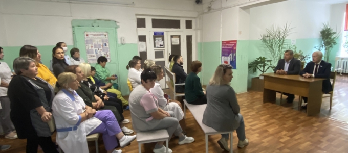 Председатель комитета по социальной политике Вячеслав Погудин провёл встречу с медицинским коллективом городской больницы Верхнего Тагила, на которой присутствовали Глава МО Верхний Тагил Василий Кириченко и заместитель Главы МО Верхний Тагил Анастасия Асадчая