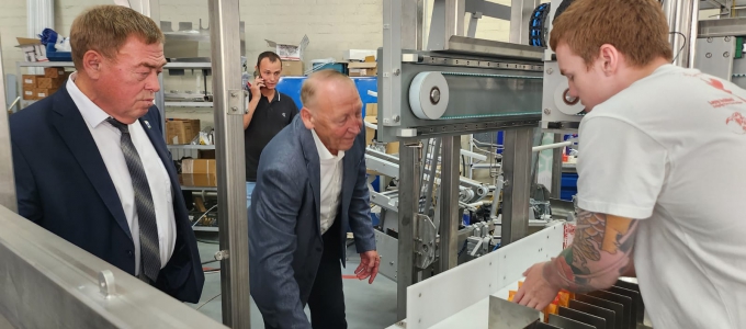Валентин Лаппо осмотрел производственные линии предприятия ООО «ВКП Сигнал-Пак». С 1991 года компания является флагманом в выпуске высокотехнологичного оборудования для автоматизации пищевой промышленности, и этот визит лишь подтвердил её лидерские позиции.