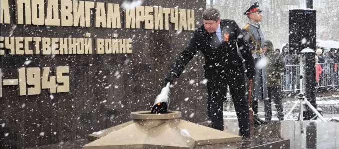 В Ирбите состоялась торжественная церемония зажжения Вечного огня на мемориале, посвященном боевым и трудовым подвигам ирбитчан в годы Великой Отечественной войны. Пламя от частицы Вечного огня, горящего на Мамаевом кургане, зажег глава Ирбита Николай Юдин