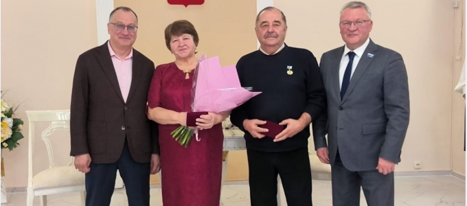 19 апреля площадкой для масштабного семейного торжества стал ЗАГС Качканарского городского округа. В этот день здесь чествовали две пары юбиляров – семью Анатолия Ивановича и Татьяны Федоровны Огневых, проживших в законном браке 55 лет, а также Дмитрия Ивановича и Валентины Ивановны Кругловых, отметивших 50-летие совместной жизни. Эти семьи, для которых 2024 год отметился изумрудной и золотой свадьбами, лично поздравил депутат Законодательного Собрания Свердловской области Сергей Никонов