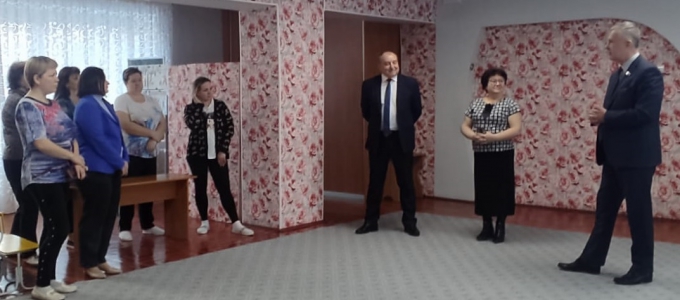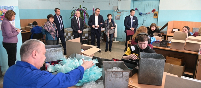 Председатель комитета по социальной политике ЗССО Вячеслав Погудин вместе с Главой города Владиславом Пинаевым побывали на Нижнетагильском предприятии трудовой реабилитации инвалидов по приглашению председателя областной общественной организации Всесоюзного общества слепых Мавзили Юдиной