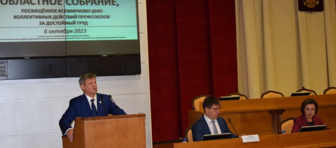 Михаил Клименко и Анна Соломеина выступили на областном совещании представителей первичных профсоюзных организаций Свердловской области в рамках Всемирного дня действий профсоюзов «За достойный труд!»