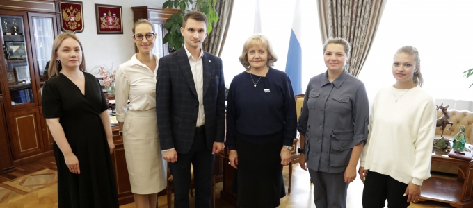 В региональном парламенте состоялась встреча председателя Законодательного Собрания Свердловской области Людмилы Бабушкиной с представителями Совета молодежи при главе городского округа Богданович (Ильей Михайловым, Мариной Бражкиной, Дарьей Пургиной, Елизаветой Дворниковой и Юлией Потаповой).
