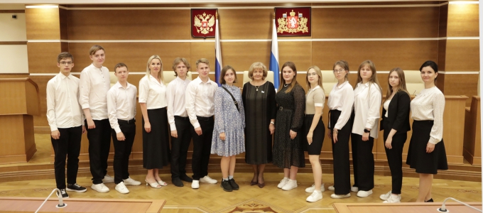 В стенах регионального парламента состоялась встреча председателя Законодательного Собрания Свердловской области Людмилы Бабушкиной с выпускниками-медалистами и высокобальниками из Камышловского городского округа