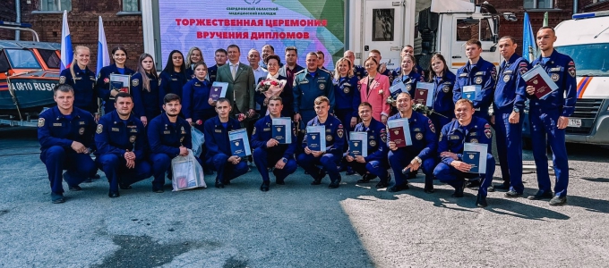 Владимир Смирнов поздравил первых выпускников отделения «Пожарная безопасность» Свердловского областного медицинского колледжа с окончанием обучения. Студенты входят в состав Всероссийского студенческого корпуса спасателей