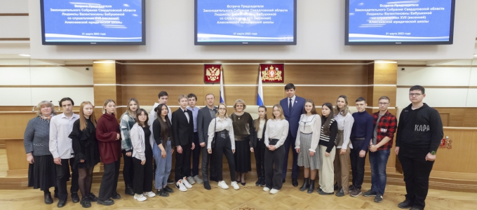 Председатель Законодательного Собрания Свердловской области Людмила Бабушкина, председатель комитета по вопросам законодательства и общественной безопасности Евгений Старков, председатель комитета по региональной политике и развитию местного самоуправления Михаил Зубарев провели встречу со слушателями XVII (весенней) Алексеевской юридической школы