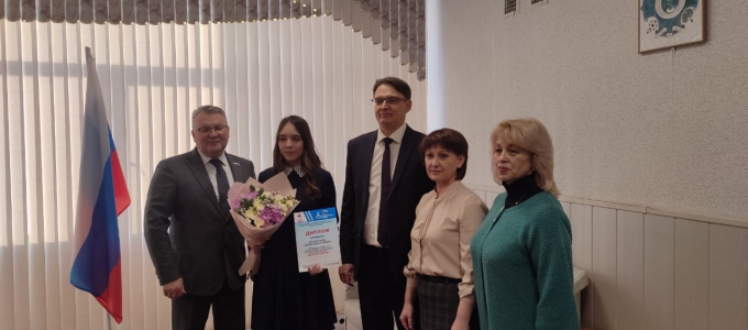 Этого высокого звания была удостоена ученица 11 класса МАОУ СОШ №76 им. Д.Е. Васильева Ксения Кондратьева