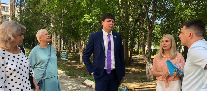 В ходе рабочей поездки в поселок Малышева Михаил Зубарев посмотрел, как идут работы по благоустройству парка на улице Тимирязева