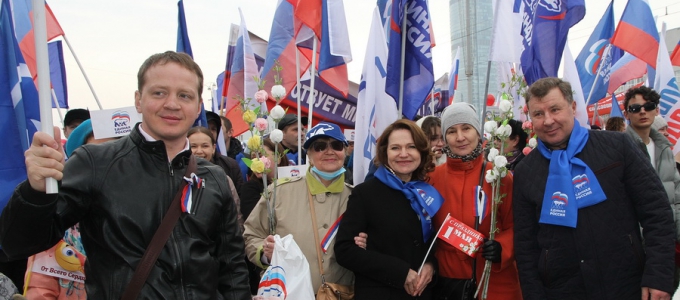 Депутат Законодательного Собрания Свердловской области Сергей Мелехин вместе с жителями Верх-Исетского района принял участие в первомайской демонстрации в Екатеринбурге