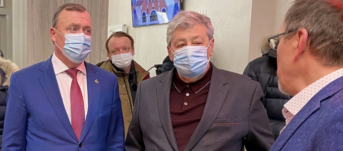Заместитель председателя Заксобрания Виктор Якимов и первый заместитель губернатора Алексей Шмыков поздравили депутатов и жителей Каменска-Уральского с принятием сбалансированного бюджета муниципалитета на 2022 год и двухлетнюю перспективу