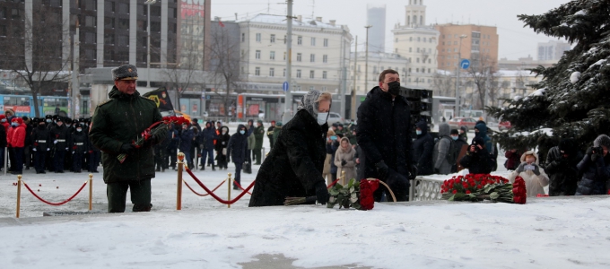 В День народного подвига по формированию Уральского добровольческого танкового корпуса состоялась церемония возложения цветов к памятнику воинам-добровольцам на Привокзальной площади в Екатеринбурге