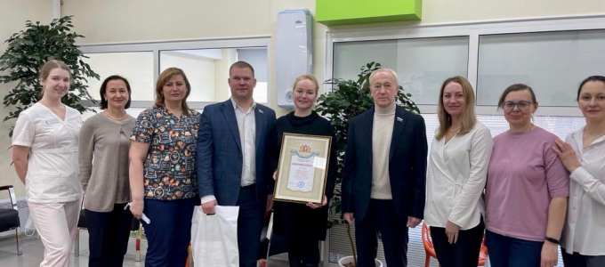Вячеслав Погудин и Александр Коркин посетили Медицинской центр «Росэк», где вручили его директору Почетный диплом Законодательного Собрания Свердловской области.