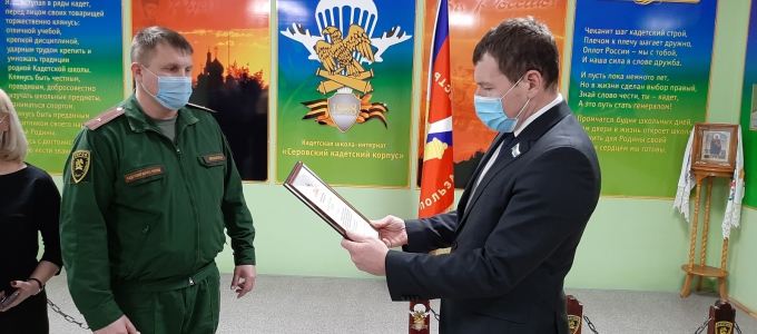 Депутат Жуков не только побывал на открытии «парты героя», вручил подарки и встретился с воспитанниками, но и наградил педагогов учреждения Благодарственными письмами Законодательного Собрания Свердловской области
