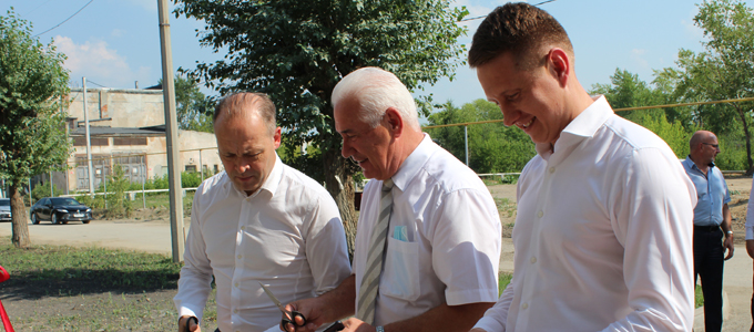 Заместитель председателя Законодательного Собрания Виктор Якимов и областной министр промышленности и науки Сергей Пересторонин разрезали презентационную ленточку на новом производстве в Каменске-Уральском