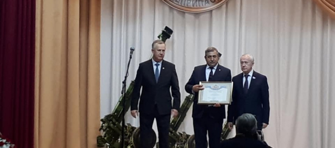На торжественном мероприятии, посвященном юбилею предприятия, депутат Законодательного Собрания Свердловской области Вячеслав Погудин вручил генеральному директору института Николаю Смирнову и его сотрудникам Почетные грамотами Законодательного Собрания и поблагодарил за проделанную работу