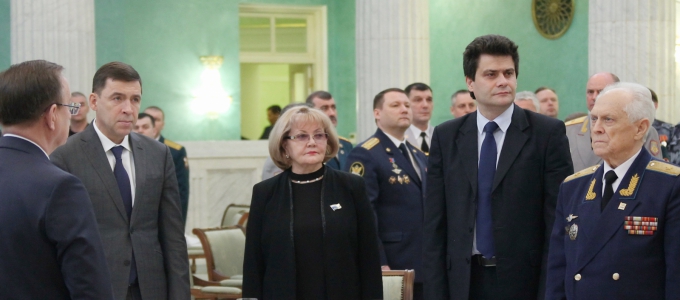 Председатель Законодательного Собрания Людмила Бабушкина приняла участие в торжественном приеме губернатора Свердловской области Евгения Куйвашева в честь Дня защитника Отечества, где также присутствовали руководители силовых структур, командиры воинских частей и руководители ветеранских организаций.