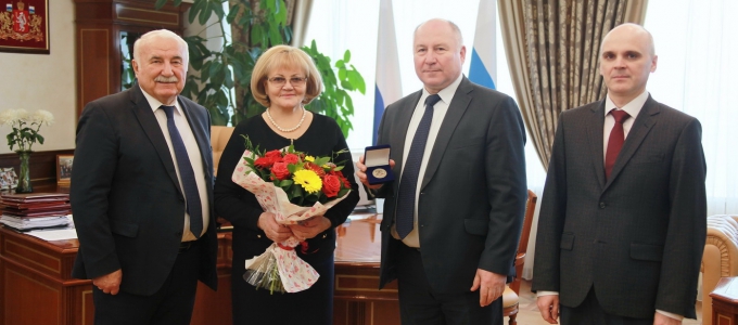 Сегодня состоялось торжественное вручение памятной медали к 25-летию избирательной системы Российской Федерации председателю Законодательного Собрания Свердловской области.