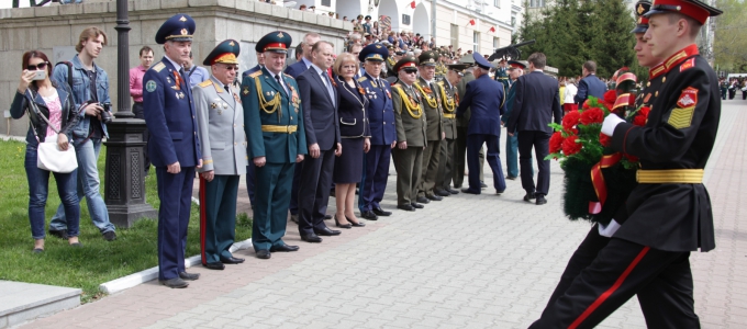В канун Дня Победы председатель Законодательного Собрания Свердловской области Людмила Бабушкина приняла участие в праздничном митинге, посвященном 71-й годовщине Победы в Великой Отечественной войне, который состоялся на площади перед Екатеринбургским суворовским военным училищем
