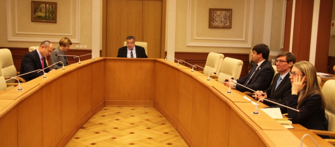 Людмила Бабушкина 29 октября провела рабочую встречу с руководителем отделения посольства Республики Беларусь в Екатеринбурге Виктором Поляниным. Во встрече принял участие председатель комиссии Законодательного Собрания по межпарламентской деятельности Максим Серебренников.
