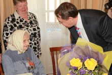 Заместитель председателя Областной Думы Анатолий Сухов поздравил Пелагею Федоровну Цырулеву со столетним юбилеем