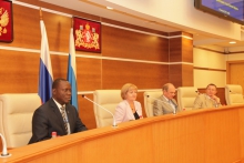 Приветствуя гостей от имени депутатов обеих палат Законодательного Собрания, Людмила Бабушкина выразила надежду, что африканским руководителям и бизнесменам было интересно и полезно ознакомиться с уникальными экспонатами «ИННОПРОМа». Для проведения столь масштабного мероприятия международного уровня у нас есть площадки для дискуссий, развитый гостиничный сервис, широкие возможности для культурного отдыха. Сам факт организации подобного форума говорит о том, что в Свердловской области созданы условия, необходимые для успешного развития бизнеса, подчеркнула Людмила Валентиновна.