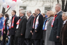 В шествии, открывшем череду праздничных мероприятий, приняли участие губернатор Свердловской области Александр Мишарин, председатель областного правительства Владимир Власов, члены правительства, руководители профсоюзных организаций, представители многочисленных трудовых коллективов.