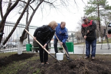 Депутаты Законодательного Собрания во главе со своим председателем в ходе субботника посадили несколько яблонек, которые украсят территорию госпиталя. Работники органов государственной власти в этот день с удовольствием мыли окна, очищали прилегающую к лечебному учреждению территорию, белили стволы деревьев и бордюры.