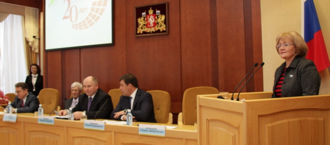 От имени депутатов Законодательного Собрания со словами поздравления к собравшимся в зале представителям всех составов избиркомов, начиная с 1993 года, обратилась председатель Законодательного Собрания Свердловской области Людмила Бабушкина.