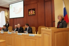 От имени депутатов Законодательного Собрания со словами поздравления к собравшимся в зале представителям всех составов избиркомов, начиная с 1993 года, обратилась председатель Законодательного Собрания Свердловской области Людмила Бабушкина.