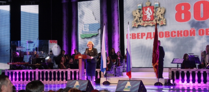 Председатель Законодательного Собрания Свердловской области Людмила Бабушкина выступила на торжественном собрании со словами поздравления.