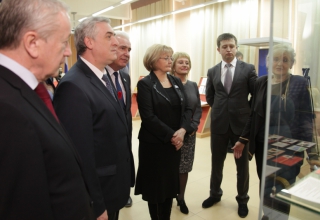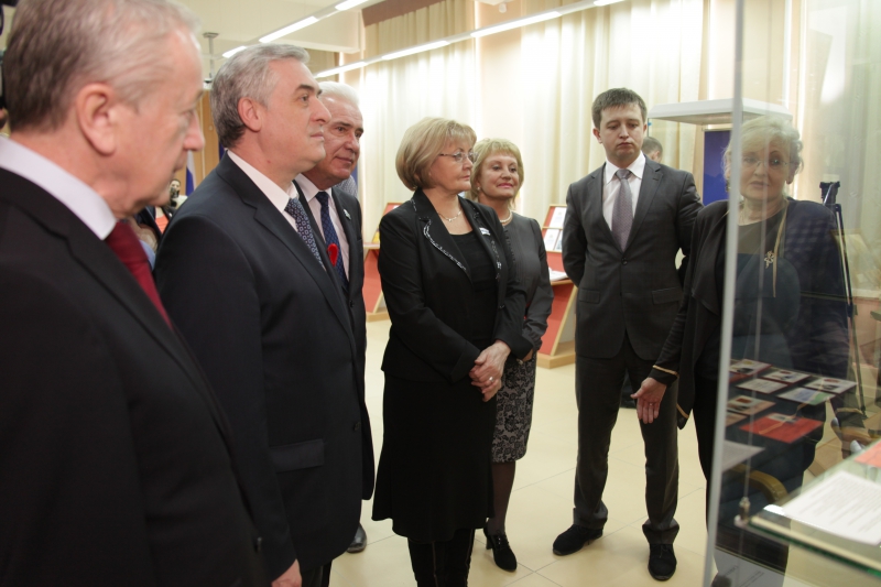 Гости ознакомились с представленной экспозицией, среди экспонатов которой – фотографии разных лет, уникальные документы, презентационные подарки Законодательному Собранию, а также книги, картины, личные вещи народных избранников разных лет.