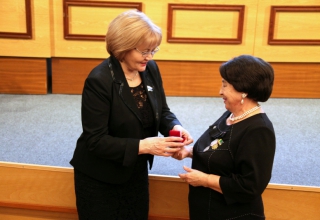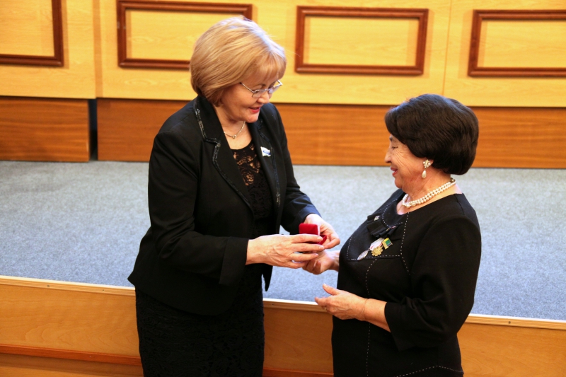 Серебряные знаки Законодательного Собрания Людмила Бабушкина вручила ряду активистов ветеранского движения за большой личный вклад в дело патриотического воспитания молодежи и активную общественную позицию.