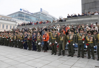 По проспекту Ленина и площади 1905 года сегодня прошли бойцы различных родов войск Вооруженных сил РФ, бойцы внутренних войск МВД России, войск МЧС РФ, курсанты военных учебных заведений.
