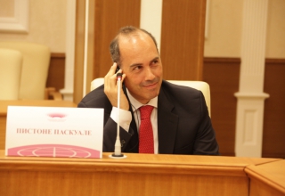 Президент Уральского юридического университета вручил господину Пистоне свидетельство о присвоении звания и мантию Почетного Профессора Уральского государственного юридического университета, как знак его заслуг перед уральской юридической наукой, напомнив присутствующим, что недавно звания почетного профессора этого вуза за большой вклад в развитие регионального законодательства и взаимодействие с юридической общественностью удостоена председатель Законодательного Собрания Свердловской области Людмила Бабушкина.