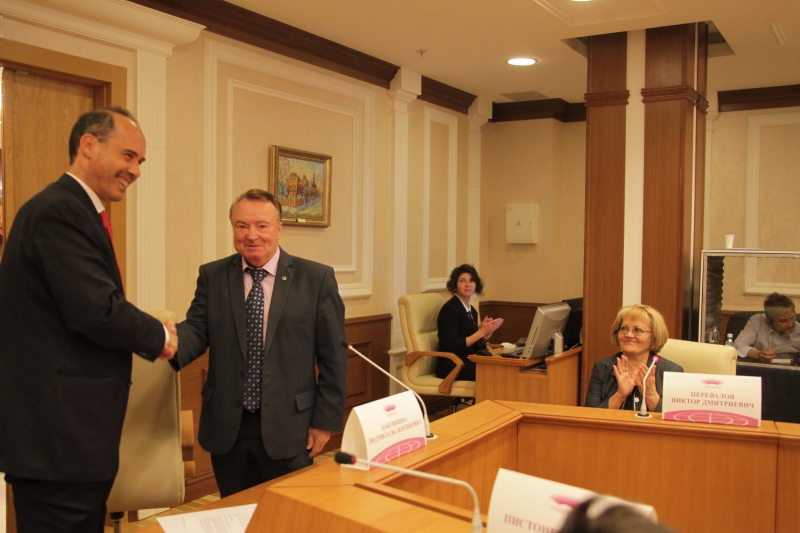 Людмила Бабушкина тепло приветствовала господина Паскуале Пистоне и сопровождавшего его президента Уральского государственного юридического университета Виктора Перевалова.