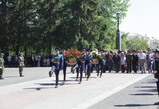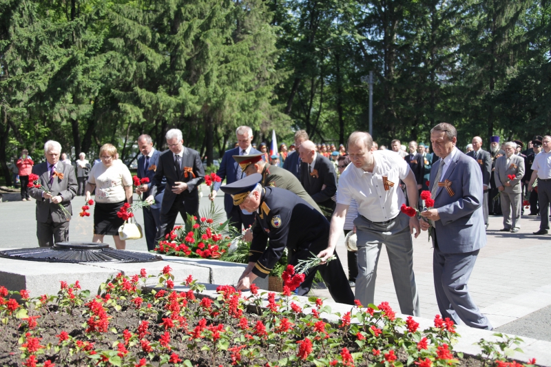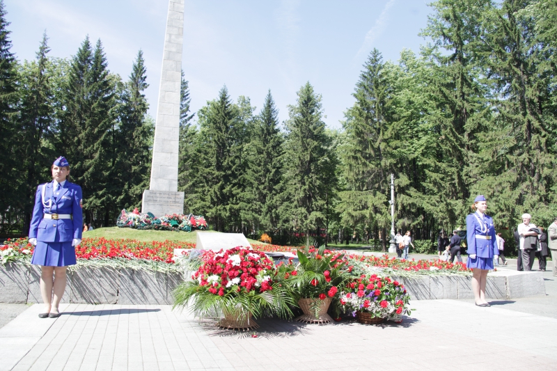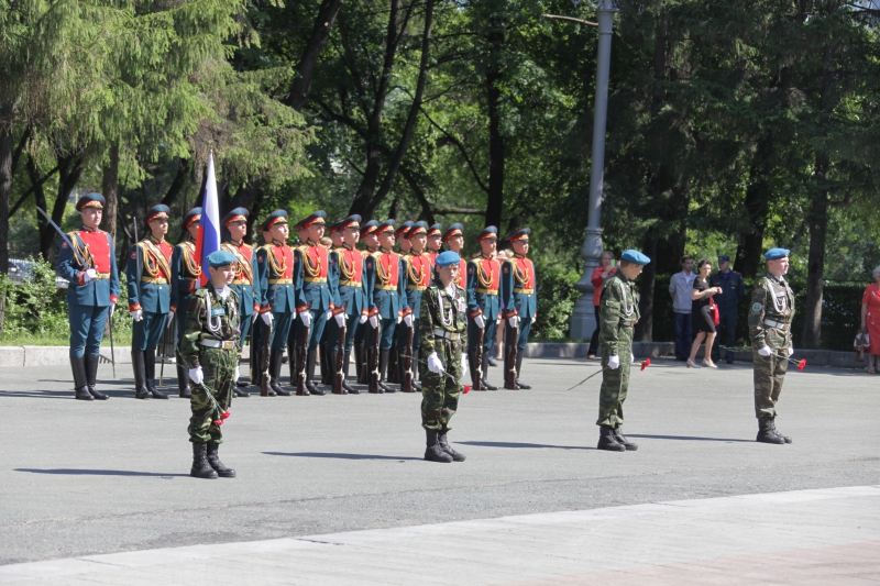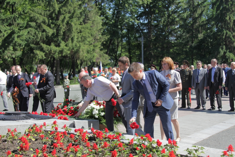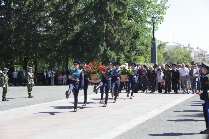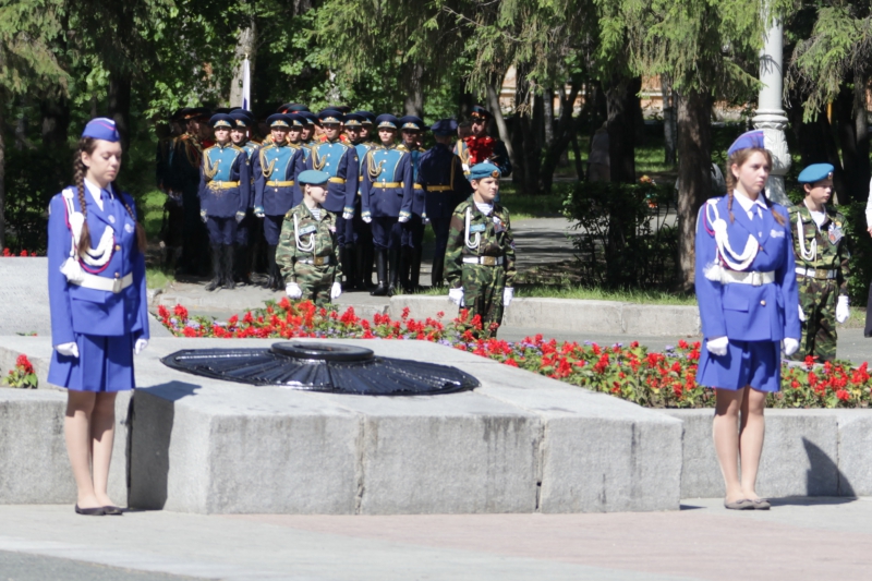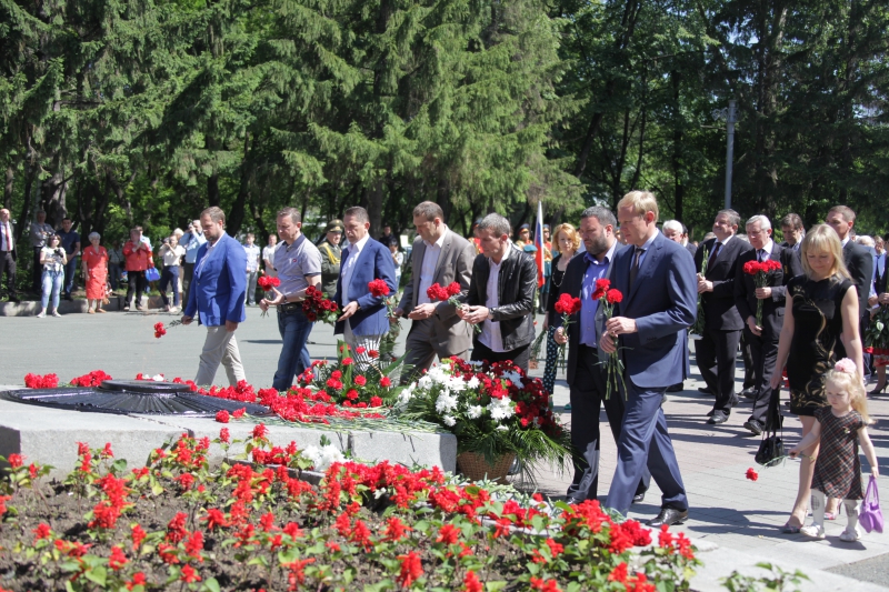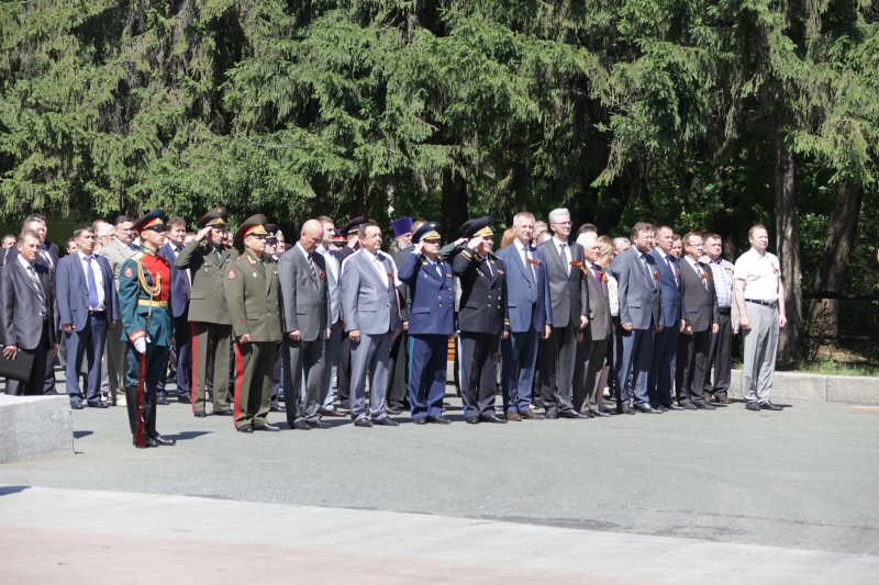 Минутой молчания собравшиеся почтили память тех, кто отстоял свободу и независимость нашего государства, спас мир от фашизма. В память о военном и трудовом подвиге уральцев участники церемонии возложили живые цветы и венки к Вечному огню. Торжественным маршем прошел взвод роты почетного караула.