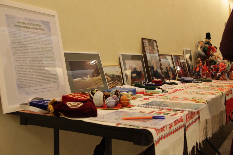 В холле третьего этажа представлены работы участников художественно-просветительского социального проекта «Новоуральское передвижничество»: живопись и графика, вышивки крестом и гладью, гобелены, иконы, авторские куклы, рушники, букеты из бисера, резьба по дереву, изделия, выполненные валено-шелковым катанием и многое другое.