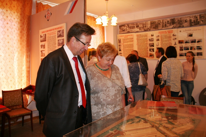 Участники выездного заседания посетили музей завода, где представлены не только образцы выпускаемой продукции, но и экспонаты, рассказывающие об истории предприятия, включая переходящее красное знамя и книги почета советских времен в бархатных переплетах и символикой СССР.