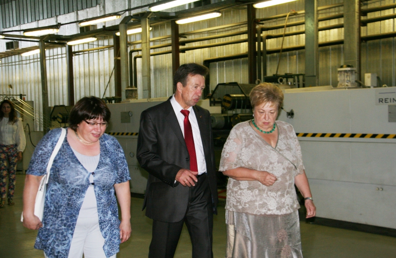 С 2007 года здесь помимо абразивных материалов стали выпускать упаковочную полиэстеровую ленту «Krepp». Сырьем служат пластиковые бутылки. Участники выездного заседания посмотрели, как это делается. Одна бутылка весит 20 граммов, завод перерабатывает 300 тонн бутылок в месяц, получая при этом 250 тонн готовой продукции. Запуск немецкой линии по производству упаковочной полиэстеровой ленты позволило заводу выйти на принципиально новый уровень своего развития.